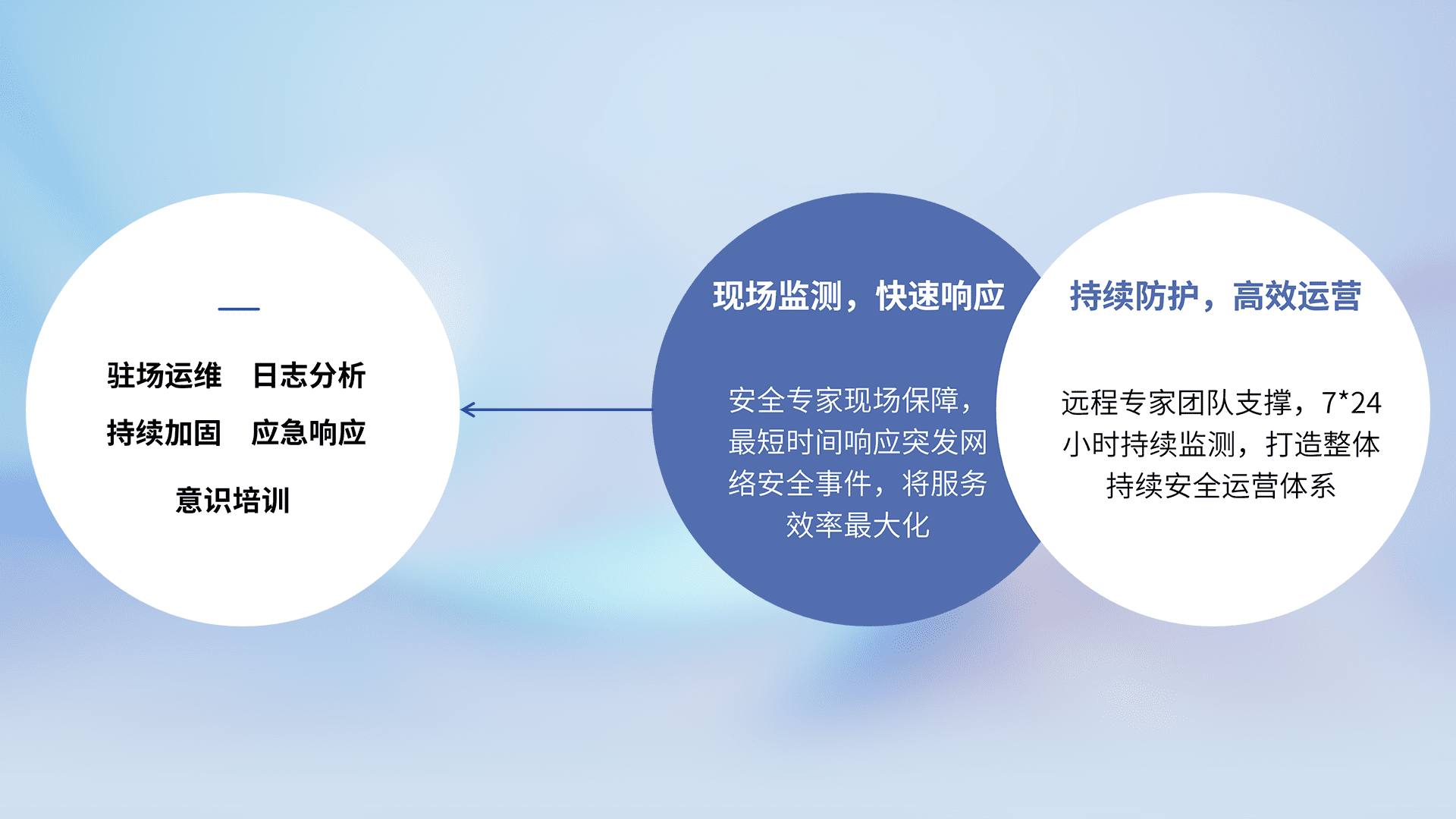 7X24小时持续监测安全事件,保持安全策略有效性,降低资产脆弱性风险,,精准拦截黑客攻击,,减少被黑客利用的机会,,,,第一时间遏制,,降低损失。。。。